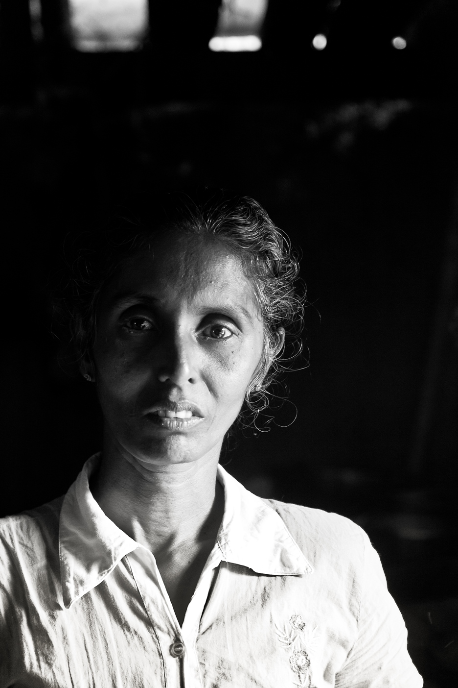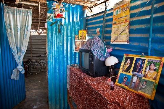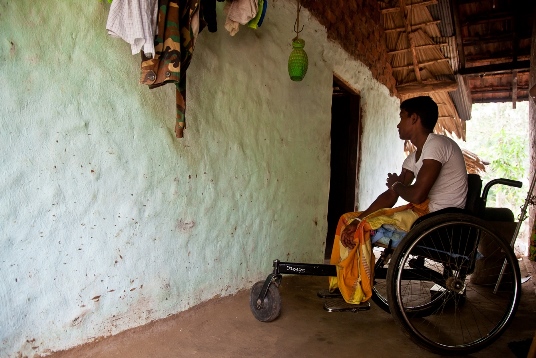 It was around this time that I was struck on my foot and in my lower stomach and my brother on his arm. It was in February 2009. We were caught in the crossfire. We don’t know if it was the Army or the LTTE. When we made it to the camp, my husband and I got separated. An ICRC ship took my daughter and son. I was first at the Trincomalee hospital and then they moved me to Dambulla. Afterwards, in Menik farm I was reunited with my husband